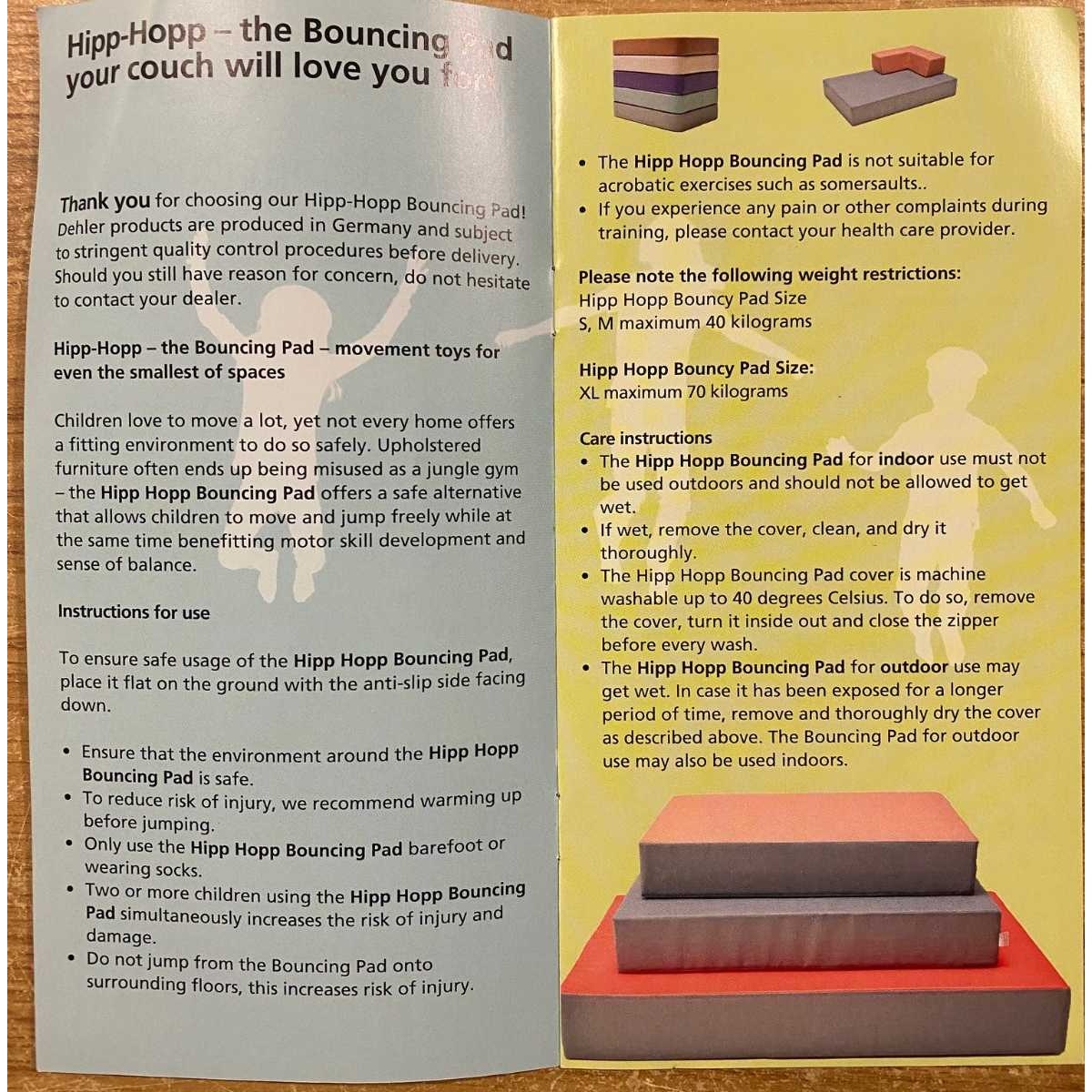 Experience safe and exciting indoor jumping with Dehler's “Hipp-Hopp Indoor” Jump Cushion. The cushion features an integrated special suspension system, ensuring that kids remain completely safe with no direct contact to the jumping mechanics.
