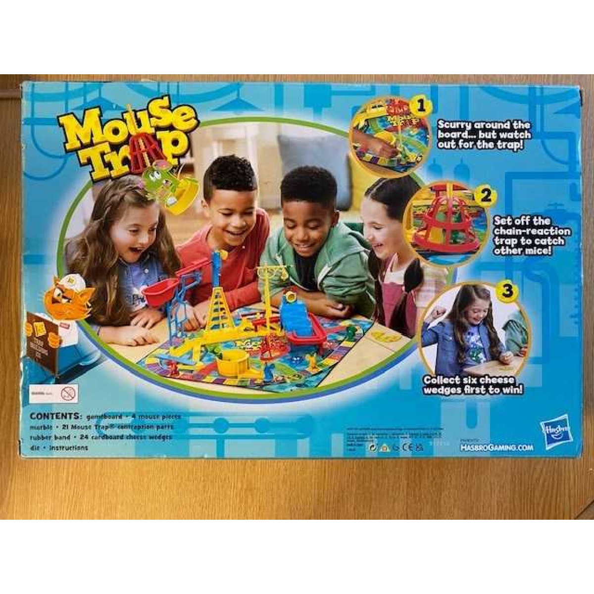 Mouse Trap board game is a cognitive development game. It promotes skills in construction, cause and effect, and decision-making.