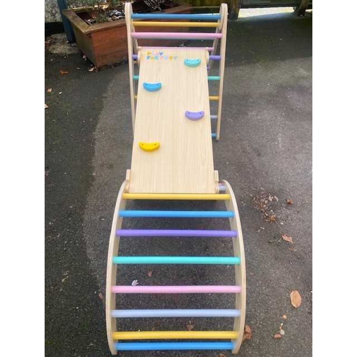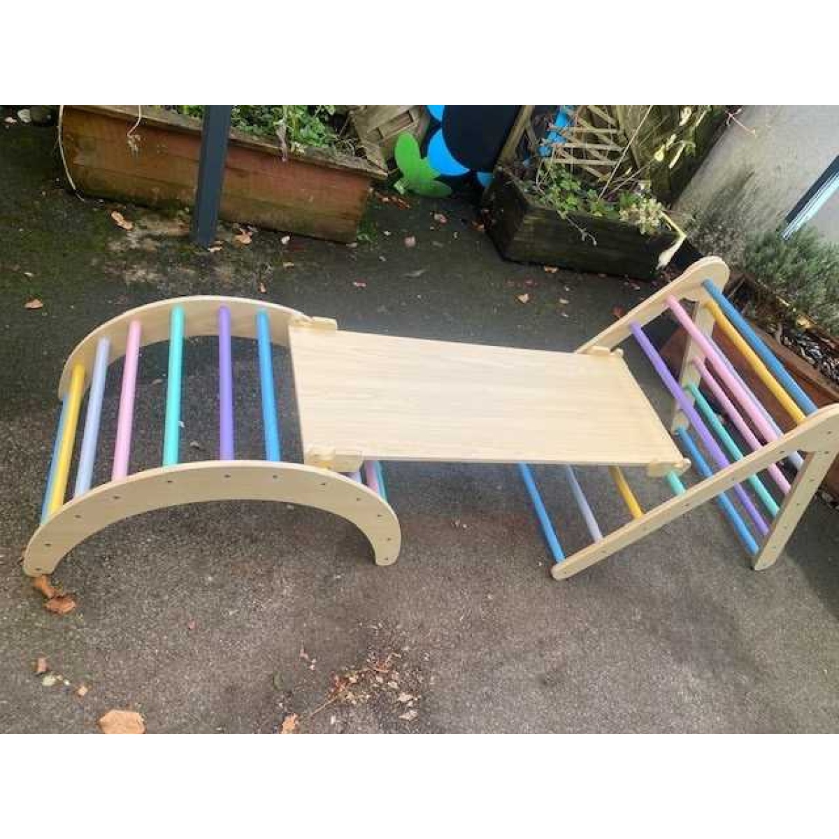 -3 piece wooden climbing frame set with a reversible ramp